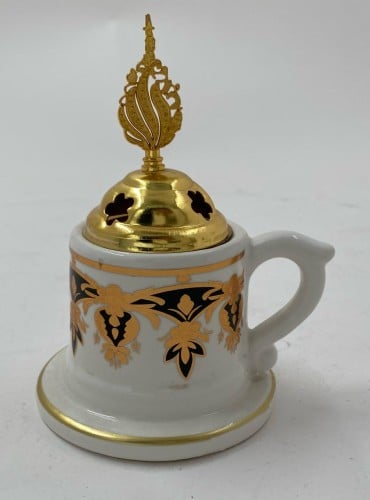 مكحلة نحاسية صغيرة بقياس 8 سم طولًا و3 سم عرضًا، تصميمها مدمج ومثالي للاستخدام العملي.