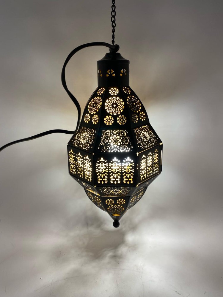 فانوس رقم 1005 بعلاق اسود يبلغ طوله 40 سم ويزن 700 جم، يوفر تصميمًا أنيقًا ومناسبًا للديكور، مع خدمة توصيل مجانية عند شراء ب300 ريال لتسهيل الحصول عليه.