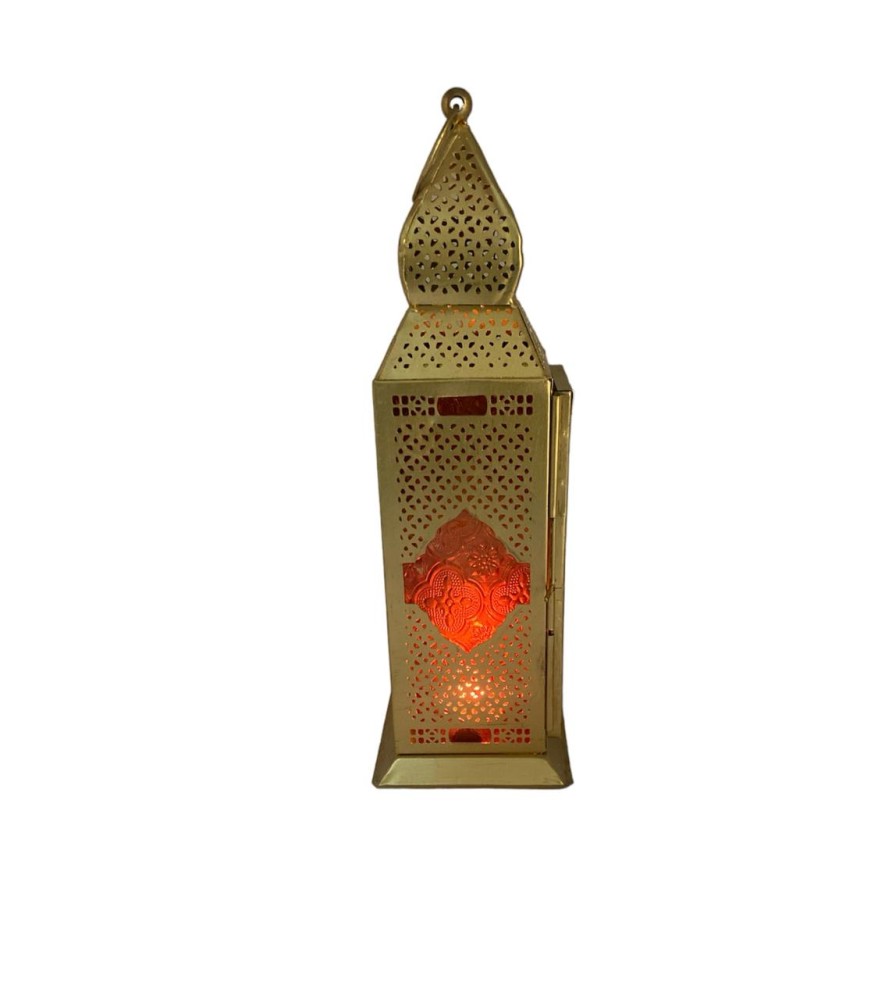 فانوس بلون ذهبي رقم 1013 بطول 29 سم ووزن 520 جم، يتميز بتصميم أنيق ومناسب للديكور. متوفر مع خدمة توصيل مجاني عند شراء ب300 ريال.