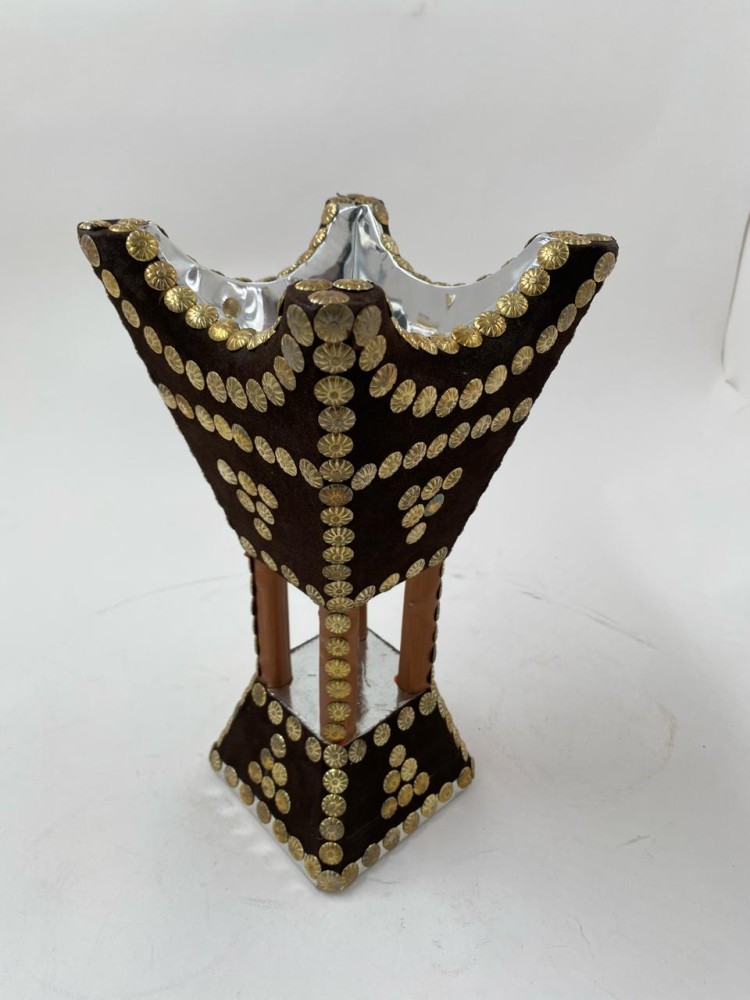 مبخرة باكستانية مصنوعة من المخمل بلون بني، بقياس طول 26 سم وعرض 10 سم، ووزن 720 جم. تتميز بتصميمها الأنيق ومناسبتها لاستخدامات البخور، مع خدمة توصيل مجانية عند شراء ب300 ريال.