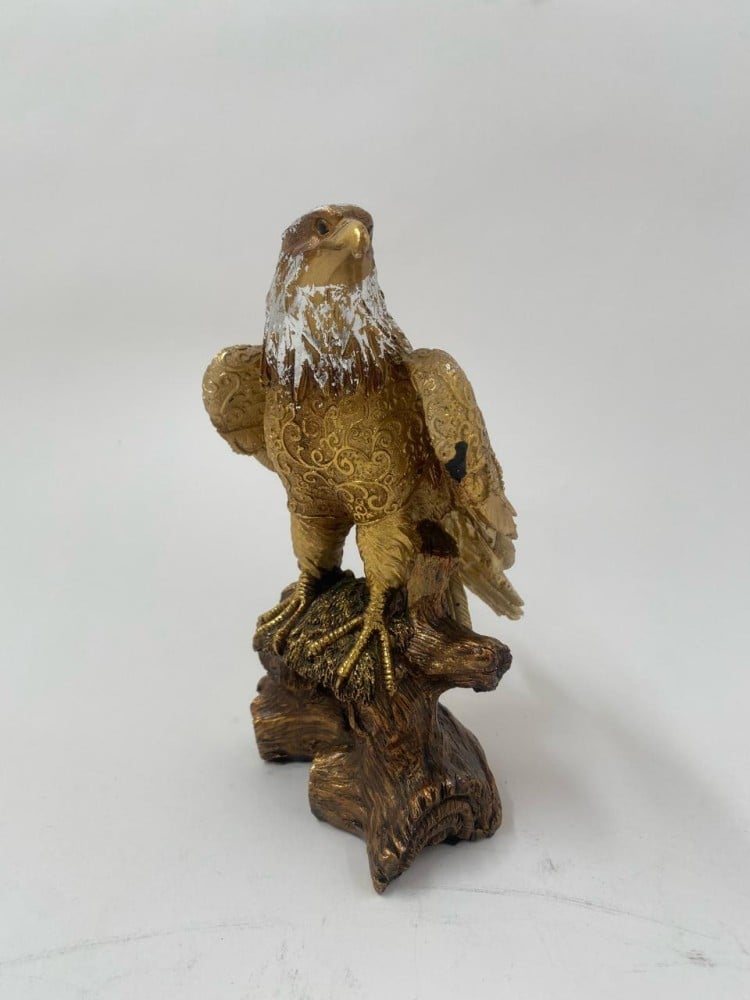 تمثال صقر ذهبي مزود بقاعدة بقياس 21 سم طولاً و10 سم عرضاً، ويزن 380 جراماً. يتميز بتصميم أنيق ومتين، مثالي للزينة أو كهدية، مع خدمة توصيل مجانية عند شراء ب300 ريال.