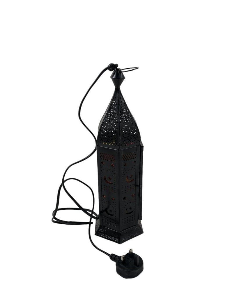 فانوس رقم 1012 طاولة لون اسود بطول 36 سم ووزن 780 جم، مناسب للاستخدام كديكور أو إضاءة على الطاولة، يتميز بحجمه العملي وخفة وزنه، مع خدمة توصيل مجانية عند شراء ب300 ريال.